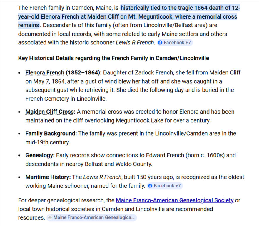 But the loss goes deeper and wider for the French family tree of cousins and in-laws include the: Crosby’s, Danforth’s, Hill’s , Pollards, Kidder’s and more.
